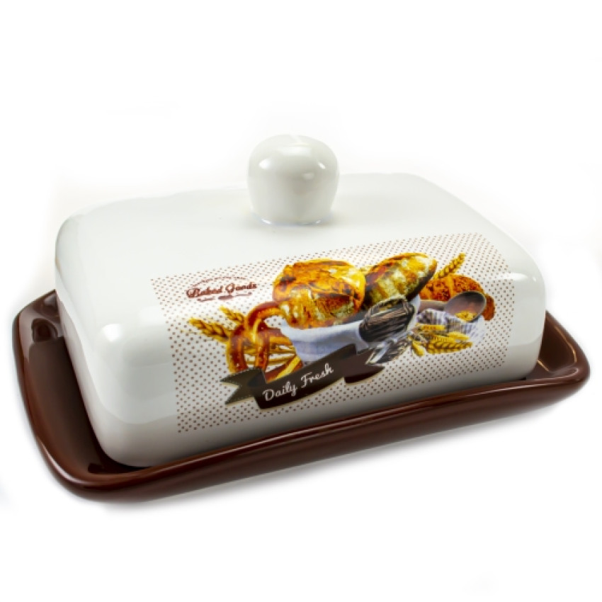 Зберігати вершкове масло в спеціальній маслянки набагато зручніше і естетичніше, ніж в упаковці. Масляничка з кришкою Interos Хліб - це зручне пристосування для зберігання вершкового масла в холодильнику, допоможе вам зберігати масло в холодильнику довше, так як воно буде залишатися закритим. Така маслянка може стати прекрасним подарунком для любителів традиційних і функціональних предметів в інтер'єрі кухні, поставляється в презентабельній упаковці.