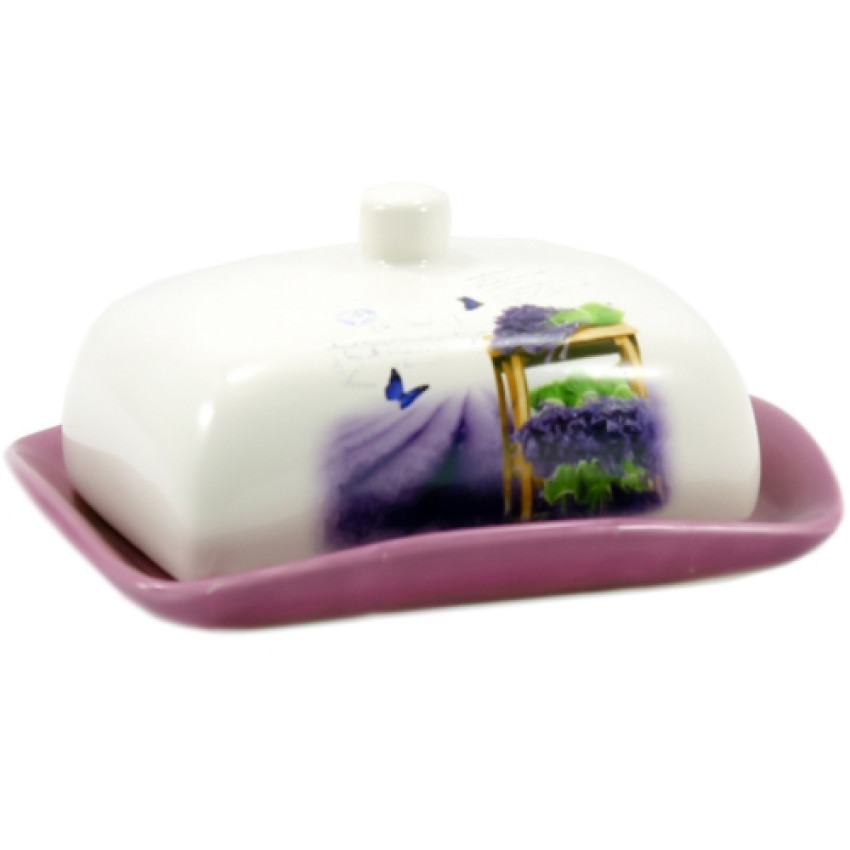 Зберігати вершкове масло в спеціальній маслянки набагато зручніше і естетичніше, ніж в упаковці. Масляничка з кришкою Interos Лаванда - це зручне пристосування для зберігання вершкового масла в холодильнику, допоможе вам зберігати масло в холодильнику довше, так як воно буде залишатися закритим. Така маслянка може стати прекрасним подарунком для любителів традиційних і функціональних предметів в інтер'єрі кухні, поставляється в презентабельній упаковці.